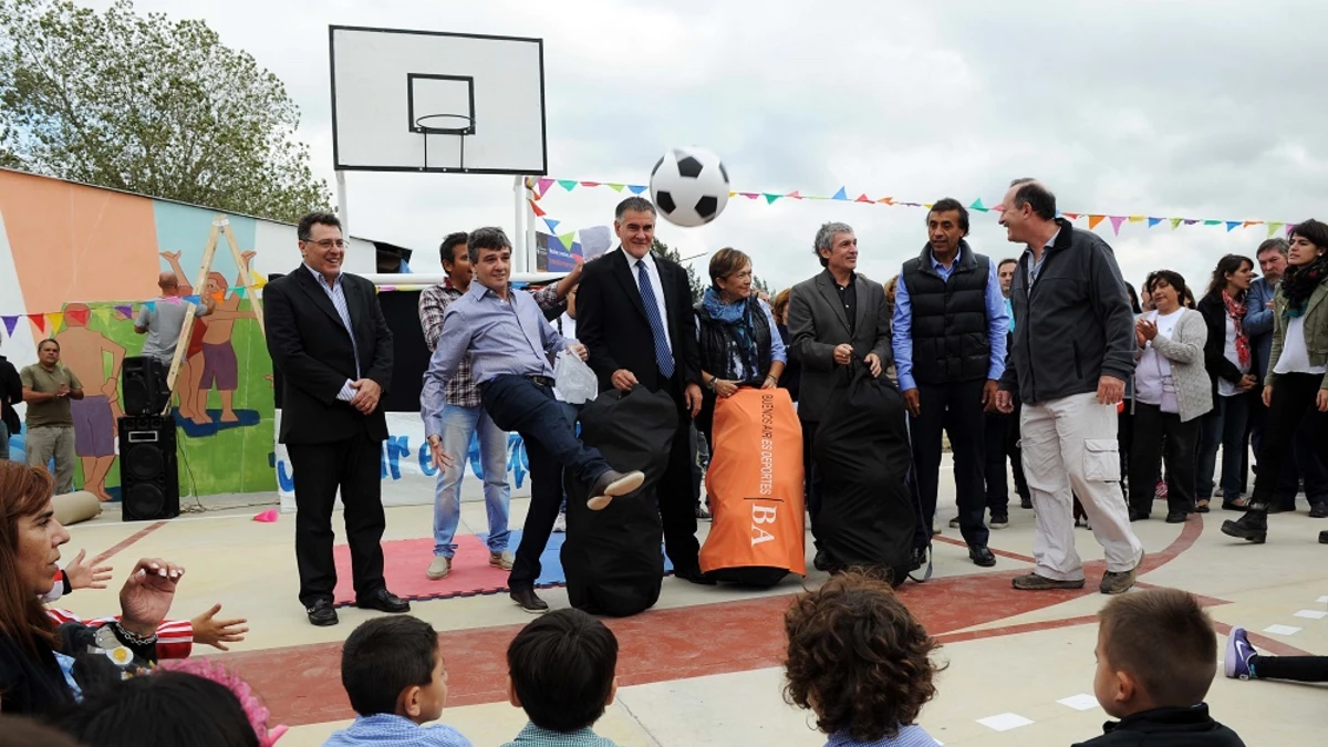 El concejal del Frente para la Victoria (FPV) Juan Zabaleta y el Viceministro de Desarrollo Social de la Nación Carlos Castagneto inauguraron con una suelta de globos un playón deportivo en el que miles de chicos de distintas escuelas y barrios del distrito podrán desarrollar actividades deportivas.