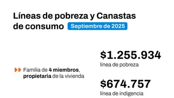 El informe detalló las líneas de indigencia y pobreza según distintas composiciones familiares. En septiembre de 2025, una pareja joven de 25 años propietaria necesitó $340.697 para no ser indigente y $624.425 para superar la pobreza. En el caso de un adulto soltero de 25 años, los valores fueron $221.232 y $449.029, respectivamente.