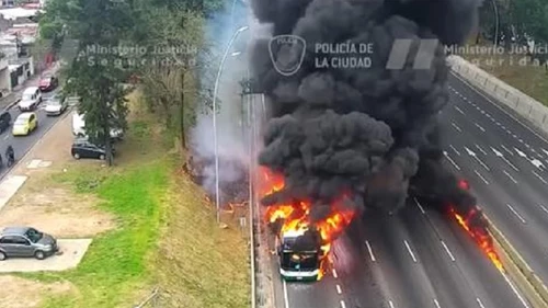 Personal de Bomberos de la Ciudad fue desplazado al cruce de las avenidas General Paz y Beiró, sentido Riachuelo, por el incendio sobre la calzada de un micro.
