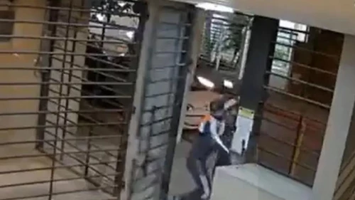 Todo comenzó por unas bolsas de basura que el agresor dejó a metros de la puerta de entrada del edificio donde vive la víctima y el hecho quedó registrado por las cámaras de seguridad.