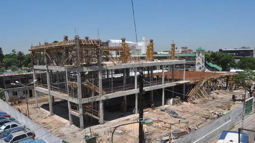 Ya se ha construido el sótano donde se instalará la sala de máquinas, los tanques de agua de reserva y de servicio contra incendio y se está realizando la estructura de la planta baja, el primer piso y el encofrado del segundo nivel.