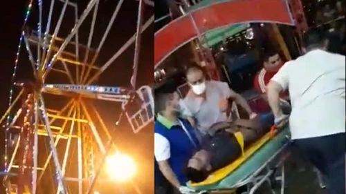El dramático momento llegó cuando un menor y su padre cayeron de la vuelta al mundo. La silla cayó sobre dos chicas que también resultaron heridas. Los 4 fueron socorridos por los vecinos.