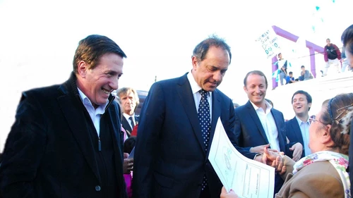 El gobernador Scioli apoyó los triunfos de Dilma en Brasil y Tavaré Vázquez en Uruguay y le envió un "palo" a su principal competidor presidencial.