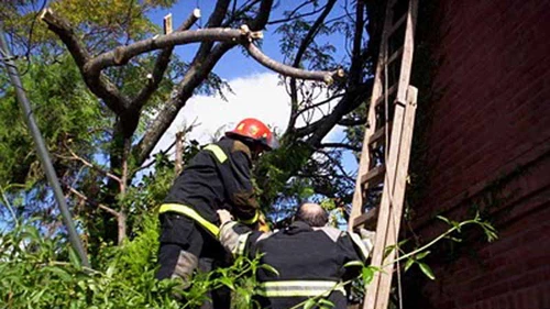 Un policía salvó su vida milagrosamente cuando podaba un árbol en la calle 43 y ruta 6, en jurisdicción de la comisaría de Lisandro Olmos. La víctima, identificada como Máximo Pintos, de jerarquía teniente, numerario de Policía Científica, habría sido golpeada por una rama, perdió el equilibrio y quedó suspendida en medio del follaje, durante más de una hora, a unos 15 metros de altura.