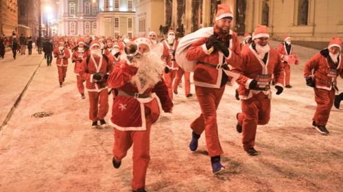 Este 22 de diciembre cientos de personas, entre niños y adultos, disfrazadas con largas barbas blancas y trajes rojos del mítico personaje de Papá Noel invadieron las céntricas calles de San Petersburgo en el marco de la III Carrera Internacional de Abuelos del Frío 2018.