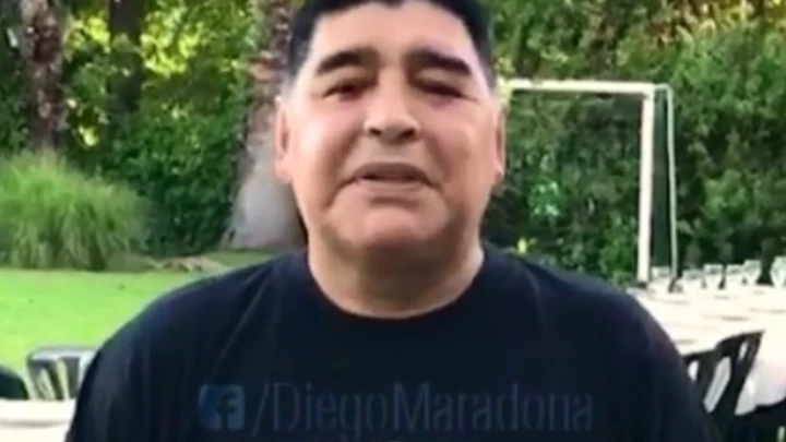 "Hola, soy Diego Maradona y quería estar al lado de ustedes en este fin de año. Este fin de año que nos agarra a todos un poco pachucos (sic)", arranca el mensaje de Diego, en el que aparece en primer plano y detrás suyo se puede ver una larga mesa preparada y un arco de fútbol.