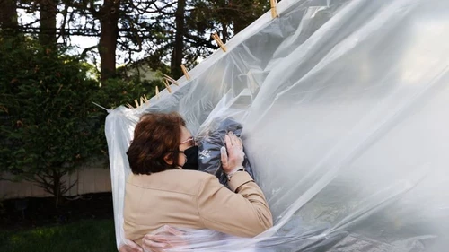 Una madre y su hija se abrazan con una cortina de plástico de por medio destinada a protegerlas de la covid-19 en Wantagh,, Nueva York. Países de todo el mundo introdujeron confinamientos y medidas de distanciamiento social para ayudar a prevenir la propagación de la enfermedad.