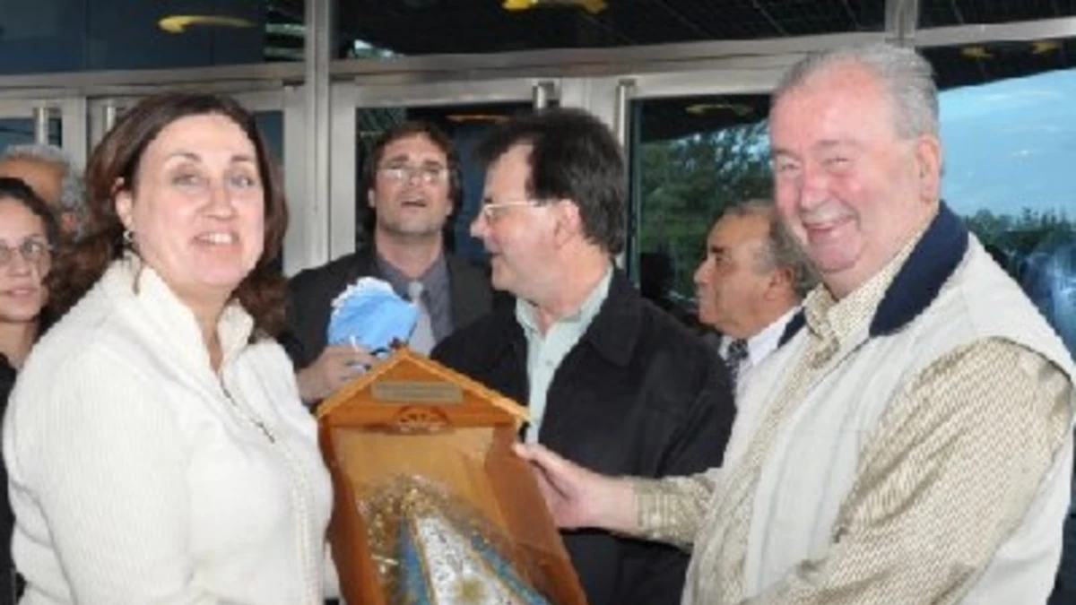 En el Predio que la AFA posee en Ezeiza, antes de la partida rumbo a Sudáfrica, la intendenta de Luján, Graciela Rosso, le entregó al Presidente de AFA, Julio Grondona, y a la Selección Argentina dos imágenes de la Virgen bendecidas en la Basílica.