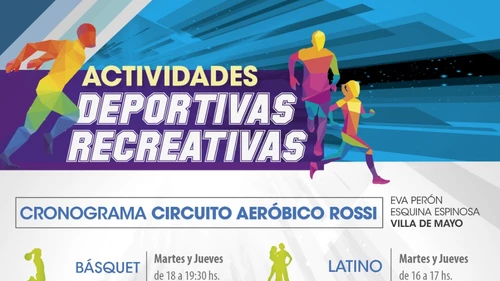 El Circuito Aeróbico Rossi, ubicado en Eva Perón, esquina Espinosa, Villa de Mayo, ofrece: Básquet - martes y jueves de 18 a 19:30 hs.; Atletismo - martes y jueves de 18 a 19:30 hs.; Zumba - martes y jueves de 19 a 20 hs.; Combate - martes y jueves de 17 a 18 hs.; Latino - martes y jueves de 16 a 17 hs.; Fútbol en burbujas - sábado de 18 a 20 hs.; Aeróbica - martes y sábado de 18 a 19 hs.