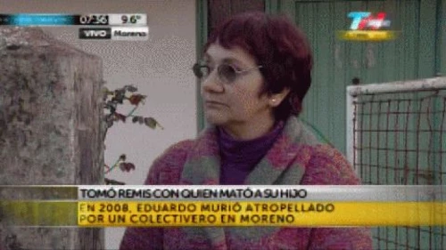 Cabrera manejaba el colectivo que encerró y mató al hijo de Graciela, Eduardo MIranda, de 27 años, quien circulaba a bordo de su bicicleta por las calles de Moreno. Según el relato, el chofer quiso evitar un lomo de burro e impactó contra el joven.