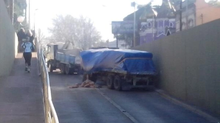 Un camión volcó su acoplado y parte de su carga en el paso bajo nivel correspondiente al cruce ferroviario que une las calles Estrada y Juan B. Justo, en la localidad de Haedo.