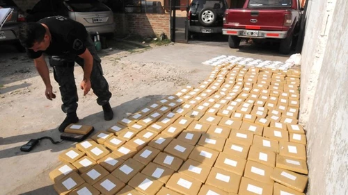 La droga, que estaba distribuida en panes de un kilo cada uno, fue hallada en una vivienda situada en Boquerón 1023, de la zona sur de Morón, donde efectivos de la Delegación de Investigaciones local realizaron uno de los siete allanamientos dispuestos por el fiscal 9 de Luján, Oscar Reggi, quien investiga a una banda dedicada al robo de máquinas agrarias y viales.