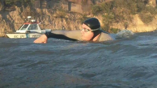 Sin piernas, nadó durante todo el día para unir Rosario y San Nicolás