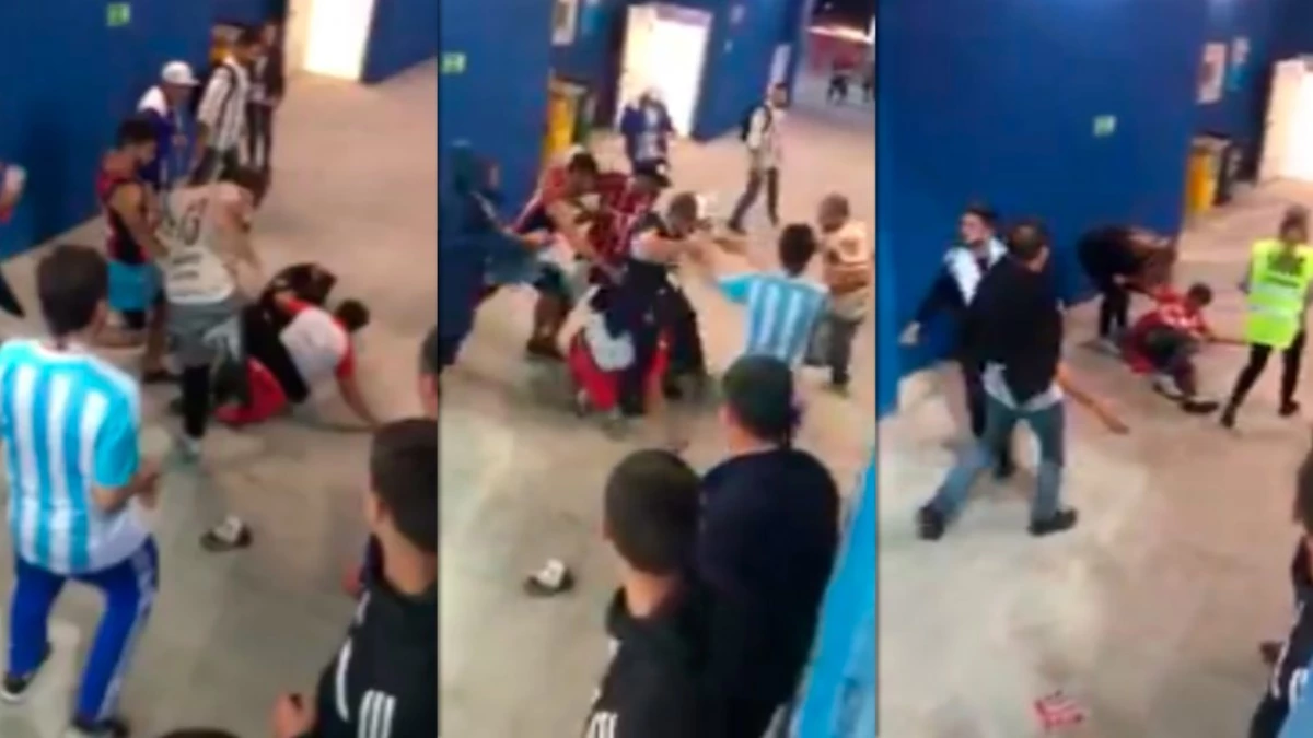 En el video que se viralizó en las últimas horas puede verse cómo varios argentinos golpean y hasta patean en el piso a uno de los hinchas europeos, mientras otro intenta defenderlo en vano.