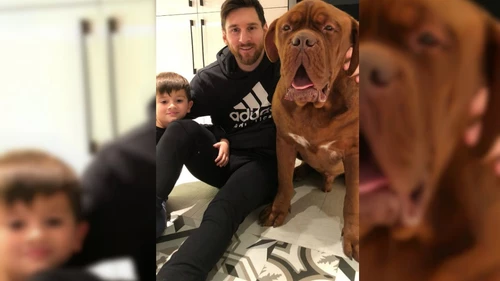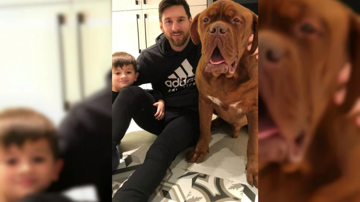 A través de su cuenta de Instagram, "la pulga" compartió una sesión de fotos caseras junto a su mascota, cuidando también a uno de los hijos de Messi.