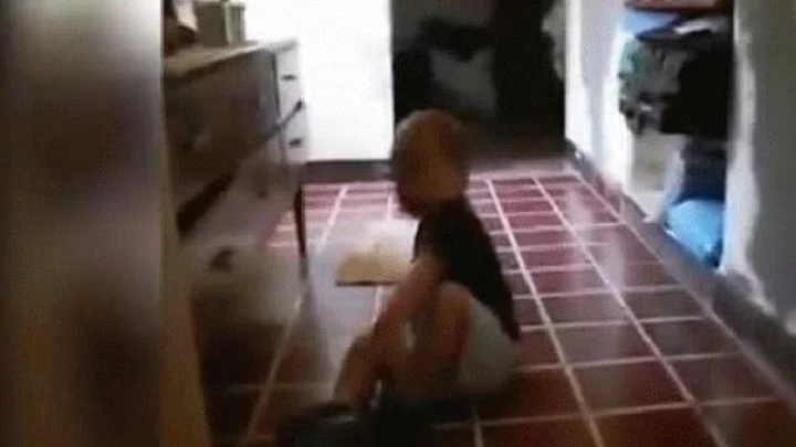 Como puede verse, mientras Benjamín juega en el piso de la cocina, una extraña figura aparece corriendo en el fondo de la escena y se pierde detrás de un mueble, lo que podría ser para algunos un pequeño duende con forma atlética y una estatura de 30 centímetros, pero para los más escépticos, una divertida muestra de lo que se puede hacer con un buen programa de edición de imágenes.