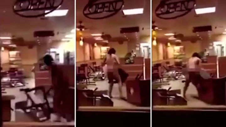 Mientras, una clienta que estaba por entrar al local grabó la increíble escena que ya se volvió viral.