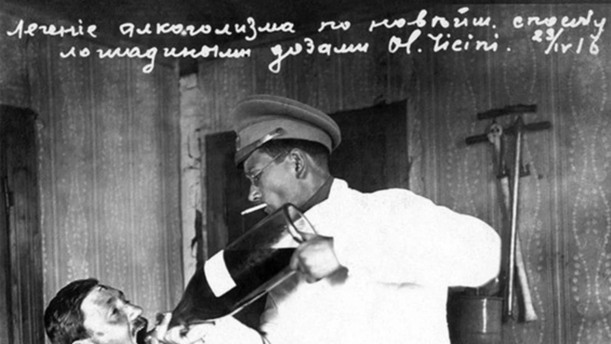 Tratamiento antialcoholismo con la última metodología de entonces: grandes dosis de aceite de ricino (1916).