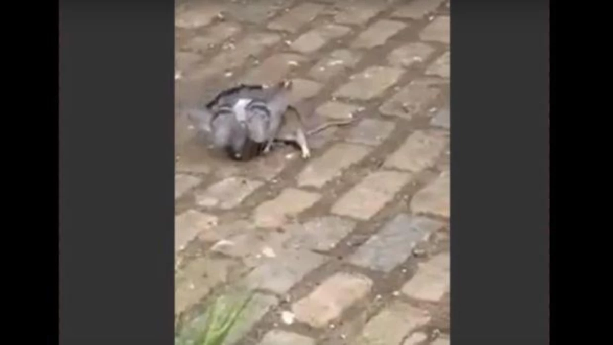 “Usted solo ve esto en Nueva York”, dice la persona que graba. “Rata frente a una paloma. ¿Quién ganará?”, agrega un segundo espectador. Lo cierto es que mientras la rata mantiene sus dientes clavados en el ave, la paloma intenta por todos los medios escapar de las garras de su perseguidor batiendo las alas.