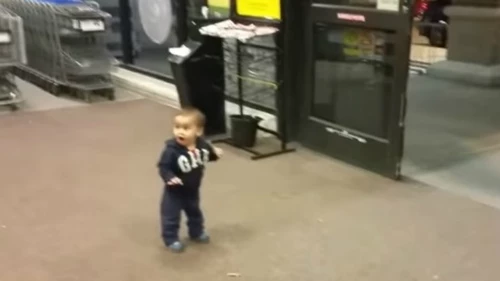 En esta simpática secuencia se puede apreciar las primera reacción de un niño al descubrir por primera vez el funcionamiento de las puertas automáticas en un local comercial.