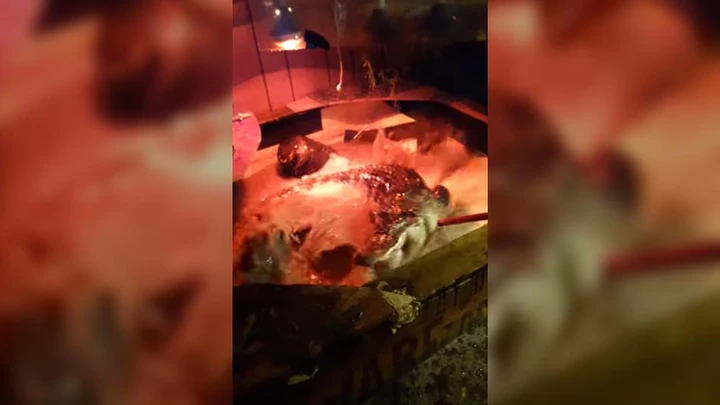 En medio del pánico, alguien le dijo que el impresionante reptil, de más de dos metros de largo y unos 90 kilogramos de peso, vivía "tranquilamente" con el habitante del lugar, que además tenía entre sus "mascotas" dos serpientes pitones reales y un tierno conejo.