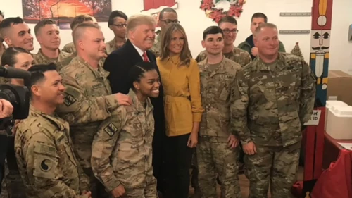 La pareja presidencial viajó "para agradecerles por su servicio, por su éxito y por su sacrificio, y para desearles una Feliz Navidad", informó la vocera de la Casa Blanca, Sarah Sanders.