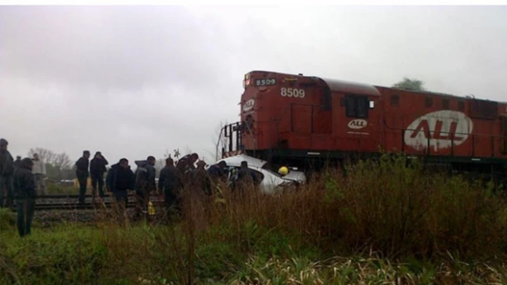La conductora, identificada como Sofía Scotto, conducía con su Renault hacia la urbanización Estancias del Pilar, donde reside, y cuando quiso cruzar el paso a nivel que está a la altura de ese country no notó que mano a provincia transitaba un carguero, que “enganchó” en una de las puntas al auto y lo arrastró 300 metros.