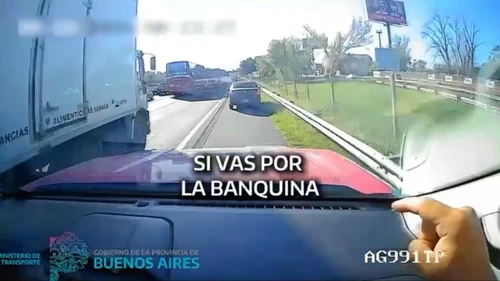 “Si vas por la banquina, te vamos a demorar”, explicó el personal en un vídeo en el cual detienen a un hombre que pasó a un camión por la derecha. “Te vas a ir con la infracción en el bolsillo”, advirtieron.