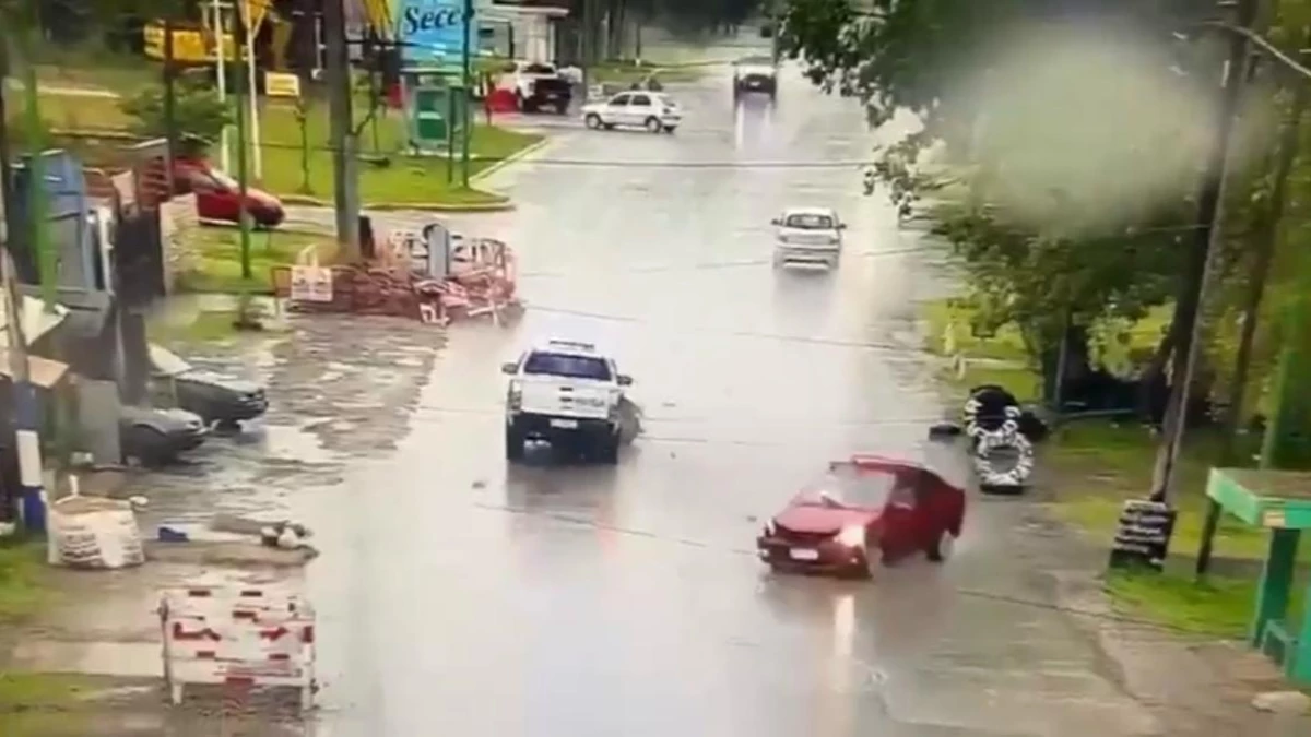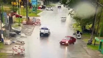 La intersección de Almirante Brown y 12 en Ensenada fue el escenario de un violento choque entre un móvil policial y un coche rojo con pedido de secuestro.