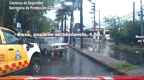 El conductor del auto estaba completamente borracho, perdió el control, cruzó a la mano contraria e impactó de frente a la patrulla del COT.