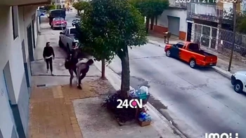 El hecho ocurrió el viernes por la tarde en la esquina de Madero y Podestá y todo quedó registrado por las cámaras de seguridad de la zona.