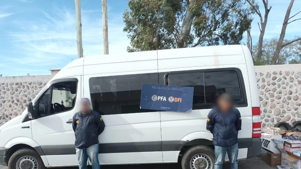A bordo viajaban cuatro personas (dos hombres y dos mujeres). Durante la inspección, los uniformados hallaron en la unidad exterior del aire acondicionado dos envoltorios amarillos ocultos que contenían 2 kilos 88 gramos de clorhidrato de cocaína compactada de máxima pureza, además de dos gorras con el logo institucional de la Gendarmería Nacional Argentina (GNA).