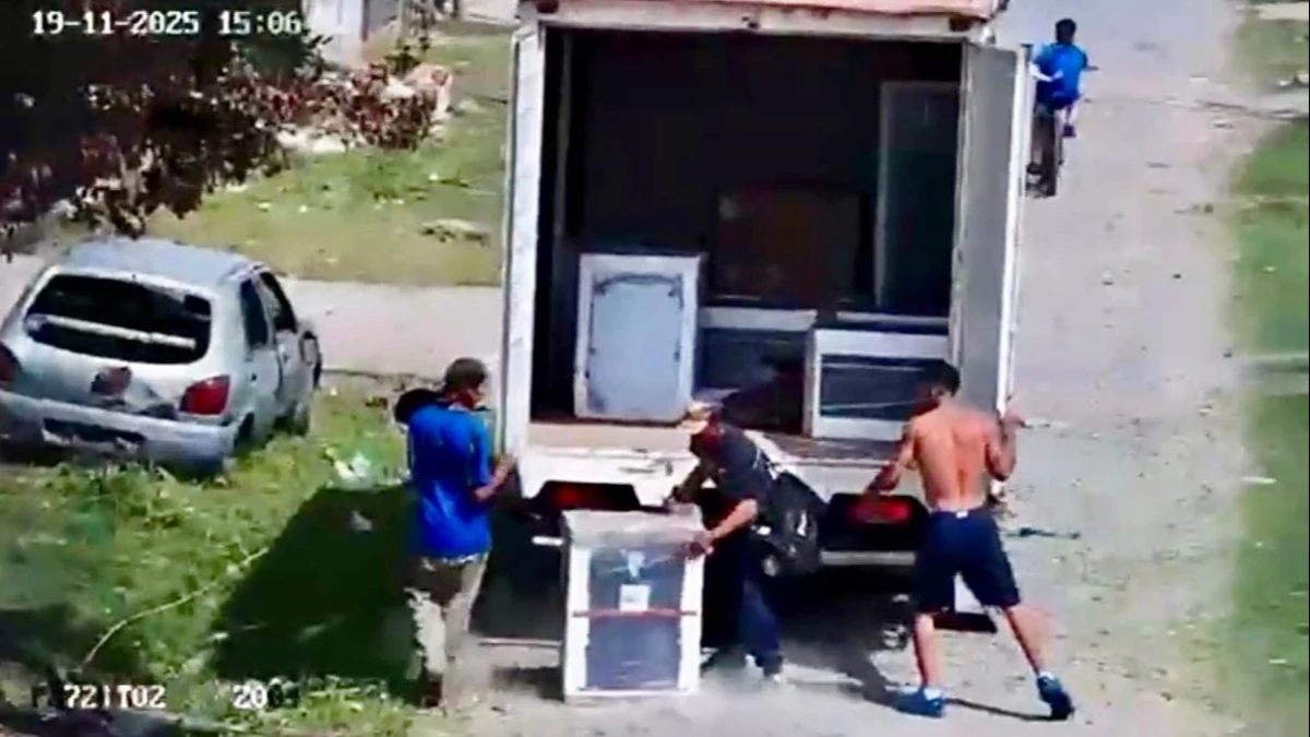 Minutos después, operadores del Centro de Operaciones Municipales (COM) detectaron en las cámaras de seguridad a tres personas descargando mercadería del vehículo en la intersección de Perito Moreno y Rosario, a unos 300 metros del sitio del robo. Las imágenes mostraban cómo los sospechosos trasladaban los electrodomésticos hacia una vivienda cercana.