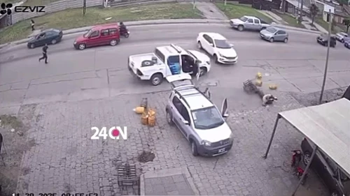 Los ocupantes del vehículo realizaron una brusca maniobra en reversa, cruzaron al carril opuesto e irrumpieron sobre la vereda, donde arrollaron a dos hombres que cargaban garrafas en un auto estacionado.