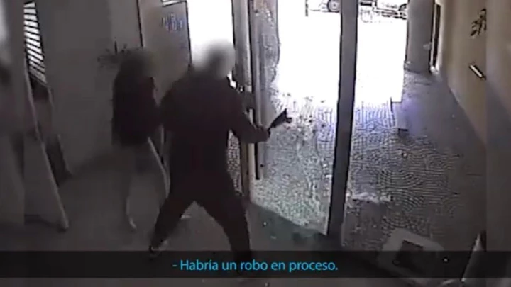Luego, el imputado ingresó a un predio privado donde se sacó una camiseta de fútbol que llevaba puesta y se la cambió por una remera negra, siendo detenido a los pocos metros.