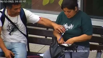 En las imágenes registradas por las cámaras del Centro de Monitoreo municipal se observa a la sospechosa, identificada como Cintia Marilin Ledesma, junto a un hombre, realizando anotaciones con una lapicera en un papel, contando envoltorios de droga y tomando cerveza.