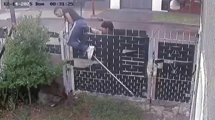 Lejos de desistir, el asaltante escaló el portón de rejas de la vivienda, tomó el dispositivo y fue enfrentado por la víctima, lo que derivó en un forcejeo entre ambos.