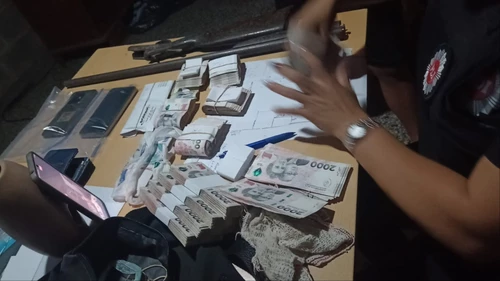 En el operativo los efectivos detuvieron a una mujer de 20 años, identifica como A. S. M., y a un hombre de 48 de nombre M. J. A.; y secuestraron más de $7.056.000, USD 3.200 , una escopeta calibre 16, 25 teléfonos celulares y 26.7 gramos de cocaína, fraccionada en 54 envoltorios.