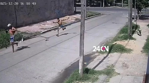Según se observa en una cámara de seguridad que registró la secuencia, el agresor efectuó reiterados disparos durante la persecución. En la huida, el hombre perdió las ojotas y continuó descalzo por varios metros, hasta que cayó herido en la calle.