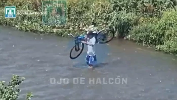 El delincuente cruzó primero con la bici por encima de su cabeza y la droga. Luego volvió a por el nene, al que cargó a caballito mientras el agua le llegaba hasta la cintura.