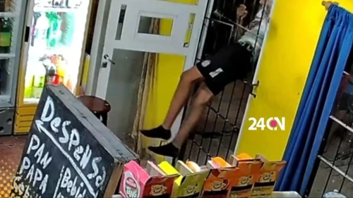 Una vez dentro se puso la remera sobre la cabeza a modo de capucha para evitar ser visto. En el momento en el que tomó algo, la trabajadora lo vio y comenzó a correrlo.