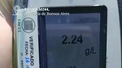 En un control de la Agencia Nacional de Seguridad Vial (ANSV) realizado a la altura del kilómetro 244 de la RN5 (provincia de Buenos Aires), los agentes detectaron a un conductor con 2,24 gramos de alcohol en sangre.