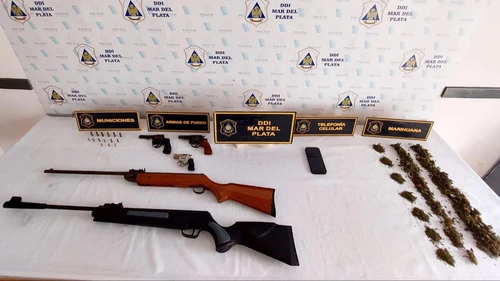 Al revisar el hogar, los uniformados se encontraron con 108 cogollos de marihuana, 2 rifles de aire comprimido; 5 chips de telefonía celular; un revólver Italo Gra calibre .22 un Taurus calibre .32 Largo y un revólver marca Doberman 102 que había sido utilizado para un atraco en Morón.
