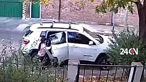 Una familia salía de un cumpleaños cuando fue amenazada a punta de pistola por un delincuente que les robó la camioneta Jeep Compass. La menor se bajó del vehículo gritando y corrió asustada en busca de los brazos de su madre.