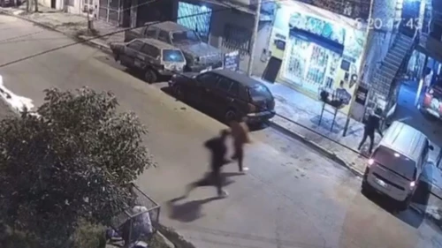 Antes de escapar, uno de los delincuentes se acerca nuevamente al hombre para quitarle lo poco que llevaba. La víctima no ofrece resistencia. Un comerciante que tenía abierto su local cerró rápidamente las persianas metálicas para evitar ser el siguiente objetivo.
