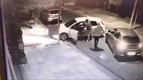 El hecho ocurrió en plena vía pública y quedó registrado por las cámaras de seguridad de la zona, que captaron cada instante del ataque. La secuencia comenzó cuando el hombre se disponía a salir con su auto. De repente, otro vehículo se le interpuso violentamente, bloqueándole el paso.