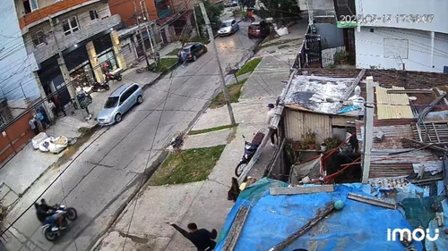 La tensión creció rápidamente. Poco después, cuatro hombres en dos motos se presentaron frente a la vivienda familiar. Uno de ellos extrajo un arma de entre sus ropas y disparó varias veces contra el frente de la casa. En los registros fílmicos también se escucha insultos: "Drogadicto, no servís para nada", grita una voz mientras suenan los disparos.
