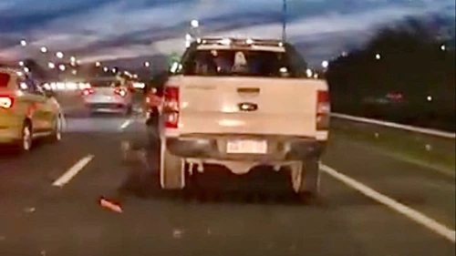 En las imágenes se ve el momento en que el efectivo se agarra de la ventana de una Ford Ranger, del lado del conductor, y es llevado varios metros hasta caer al suelo, donde no lo atropellaron de casualidad. "¡Dioooos! ¡Dioooos!", exclamó la testigo.