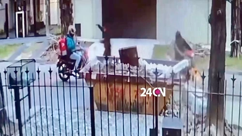 La secuencia duró apenas unos segundos: el delivery lanzó varias trompadas, sorprendió a los asaltantes y logró hacerlos retroceder. Los motochorros escaparon del lugar sin concretar el robo.
