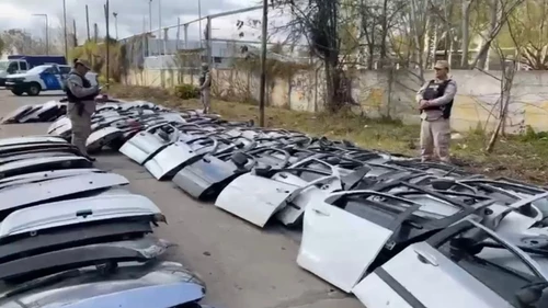 Además, se secuestró el vehículo, un cuatriciclo, una moto, cinco celulares, patentes de trailer y más de 500 autopartes (puertas, paragolpes, portones traseros, llantas, entre otras).